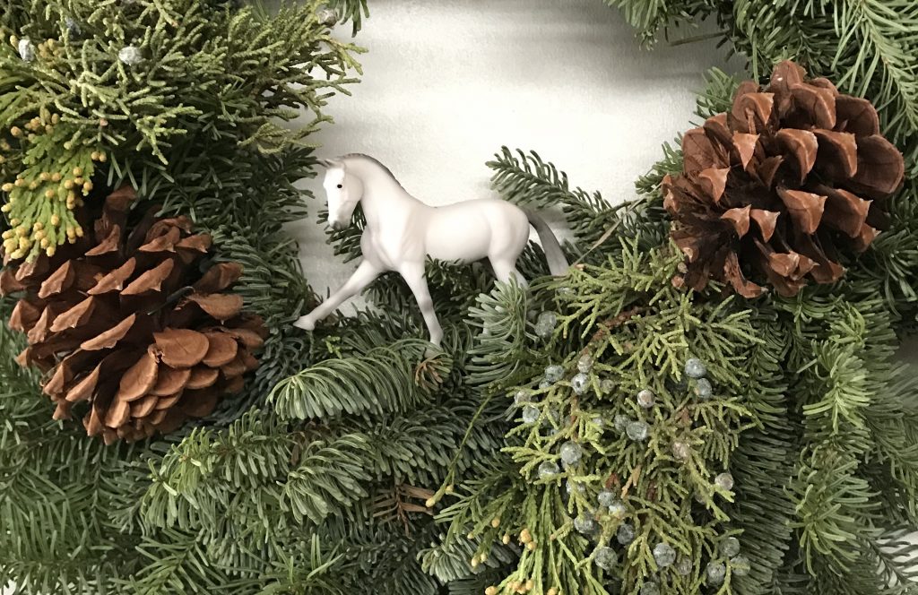 Not only does decorating with pine branches bring a rustic natural touch to your holiday décor, it also adds a pleasant scent to the barn. Everyone loves the smell of fresh pine shavings, and this is just another derivative. Most pine species are relatively non-toxic but make sure to keep them out of reach and avoid poisonous varieties of pine like hemlocks. Holly branches and berries are another common holiday greenery but these are also toxic. Pine branches can be harvested from around the property. Maybe make a trail ride outing of going to look for natural décor!