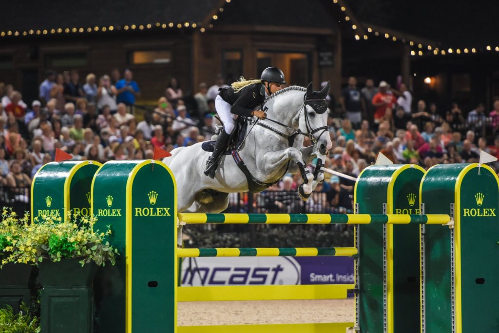There is also much to amuse and entertain the whole family, making it even more unique from most other horse show venues. For the moms, there is boutique shopping and a spa, complete with nail salon and yoga classes (coming soon). For the younger siblings, there is a carousal, mini-jump course and face painting. For the dads, there is the Silo Bar, golfing, gun club and a shaded hammock area. Okay, that hammock area is actually good for everyone. Horse shows can wipe you out! Then, of course, TIEC has Saturday Night Lights. The competitive grand prix event is the focus in the large stadium under the bright lights, but the live music, additional food vendors and kid-friendly entertainment (magicians, acrobats, fire-twirlers, etc.) are a blast for all. I love how well attended Saturday Night Lights is. The local community really turns out to support the event and it is a great reminder of how lucky we are to be a part of this sport.