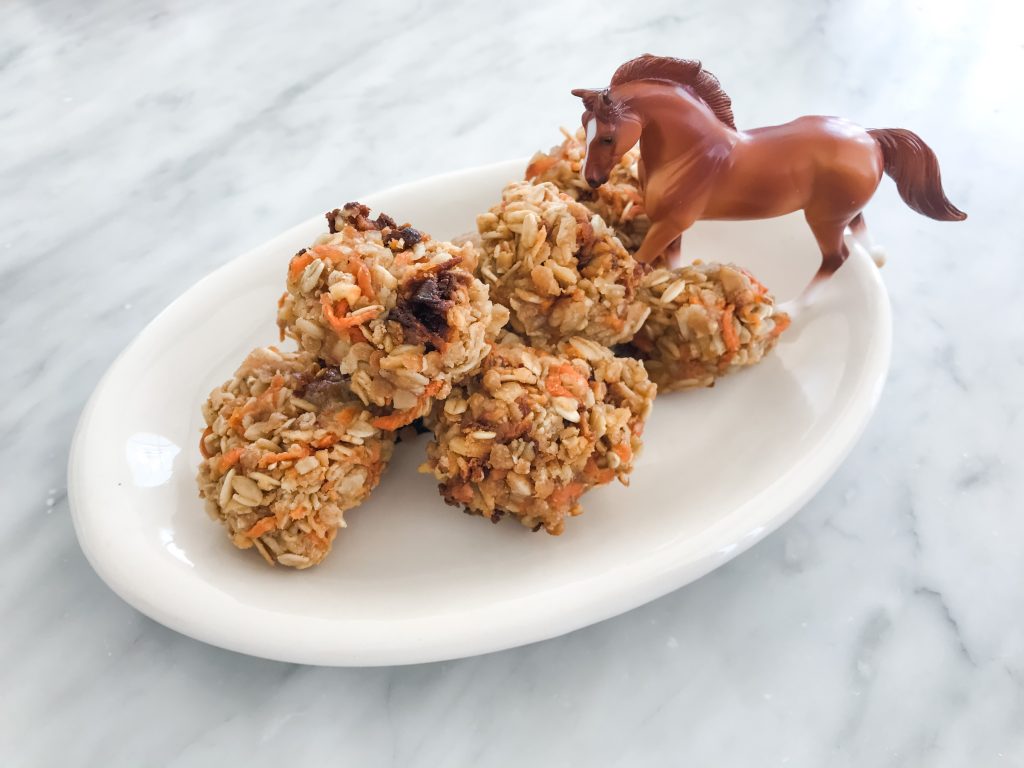 Try this easy recipe! You’ll need six chopped carrots, two cups of quick oats, some molasses, and some grain. Start by mixing the carrots, molasses and grain in a large bowl. The carrots should be completely covered. Next, place a few tablespoons of the mixture into the oats and roll it into a ball. Continue with the rest of the mixture. Each ball should be wrapped in foil and placed in a freezer or outside (if it’s cold enough). Let each ball thaw just a little bit before feeding them. Or try this ” Homemade Horse Cookies” recipe.